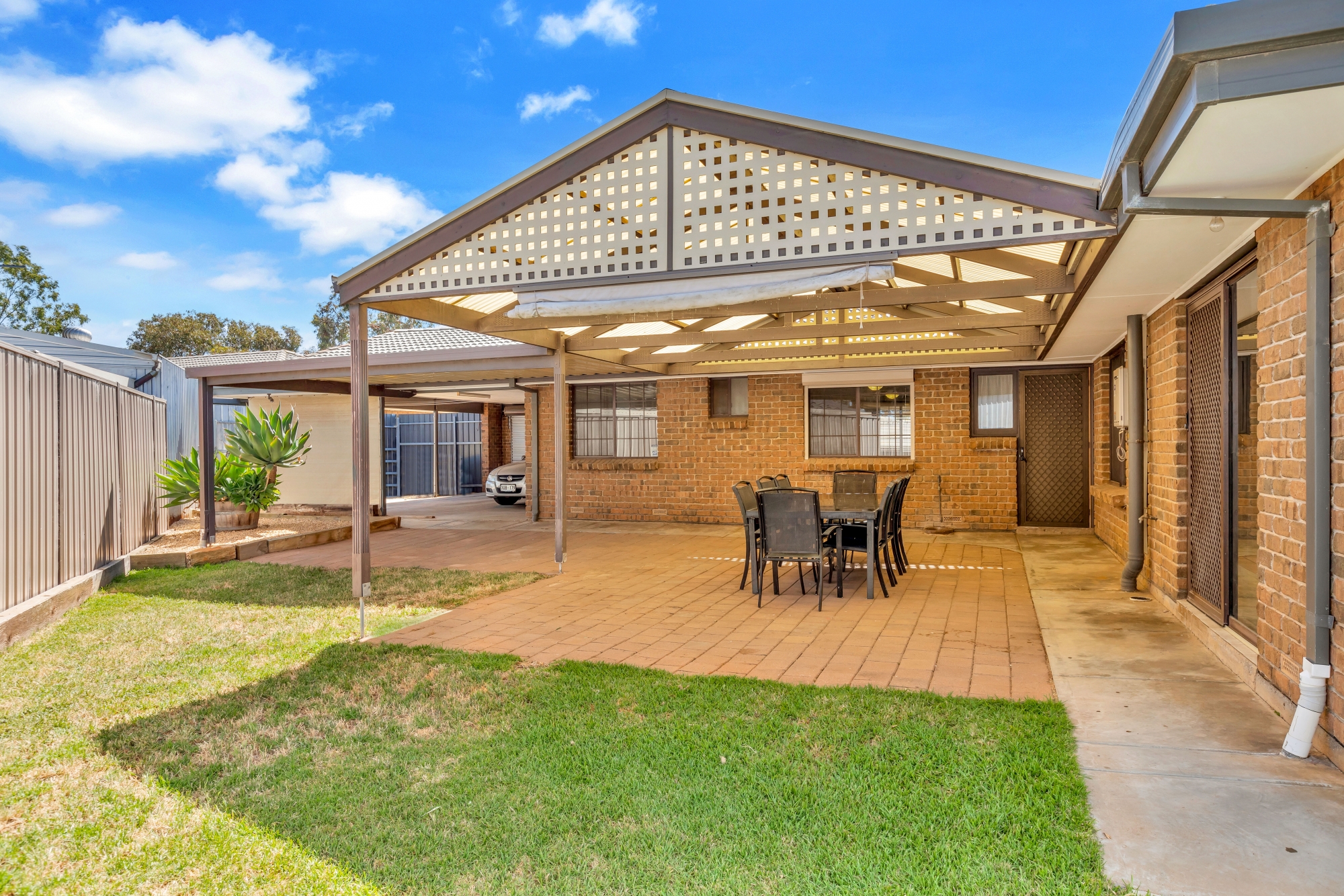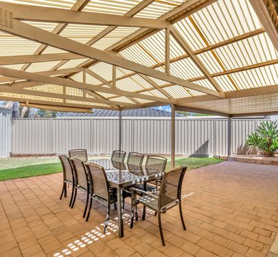Outdoor entertaining area with gable roof