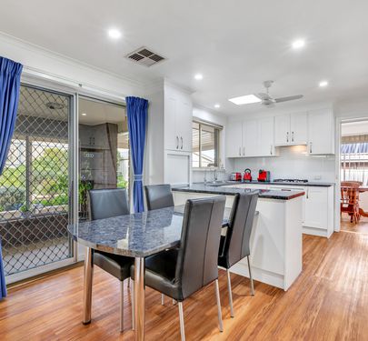 Updated gas kitchen with walk in pantry adjacent to casual meals area